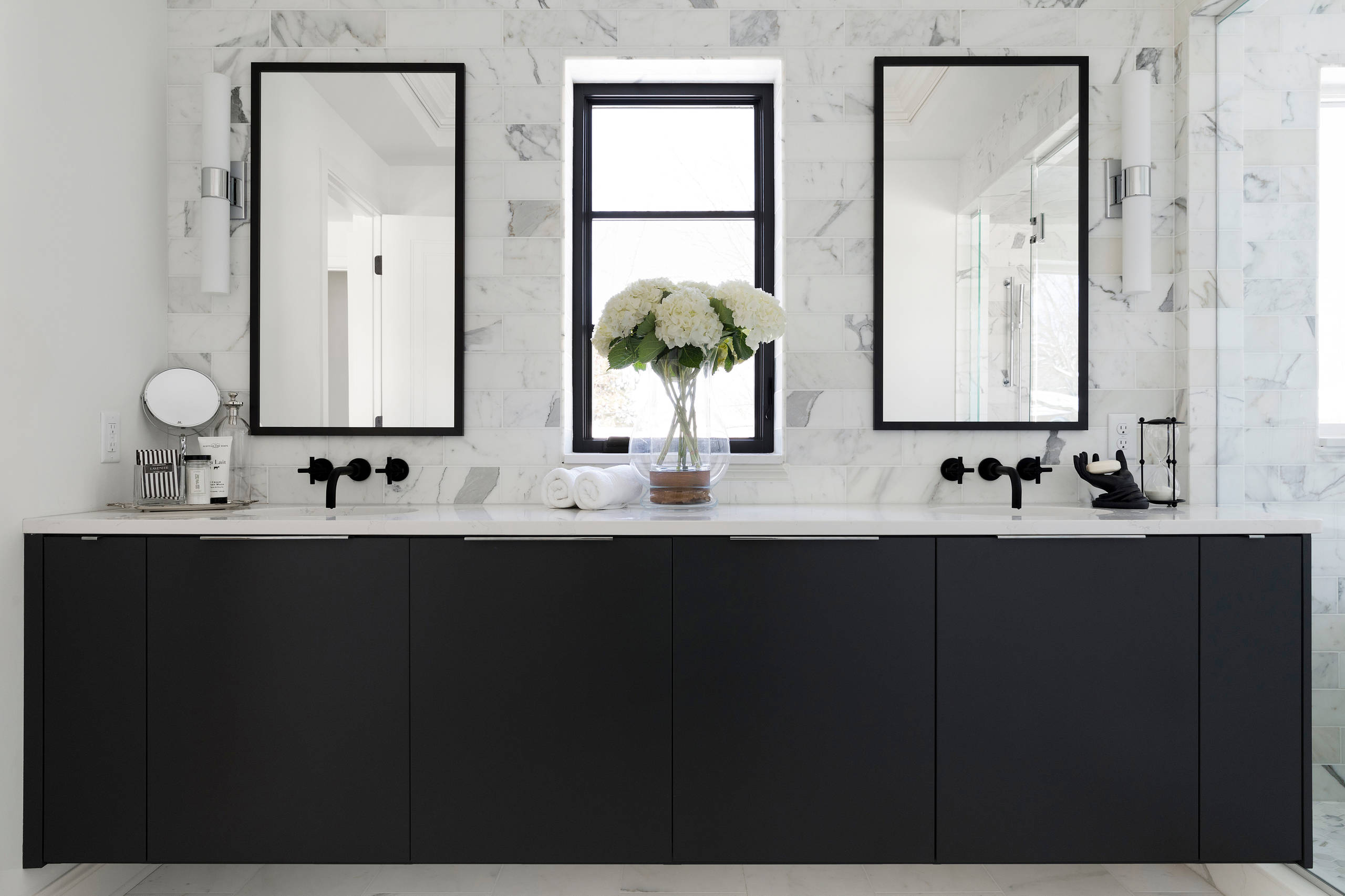 Marble Bathrooms We Re Swooning Over Hgtv S Decorating Design Blog Hgtv from hgtvhome.sndimg.com Yet there are numerous ways to introduce marble in your bathroom, even when you're on a budget. Start your search now and free your phone. Blue striped wallpaper is accented with honed marble backsplash tiles in a bathroom featuring a rope vanity mirror hung over a white bath vanity finished with a honed. A silver beveled mirror adds a polished finishing touch. Download black wallpapers hd free background images collection, high quality background wallpaper images for your mobile phone. Whether you use it on your floors. Bathroom decor luxury glamorous bathroom flat design luxury apartments interior inspiration elegant bathroom. The routered detail in the custom joinery drawers echos the.