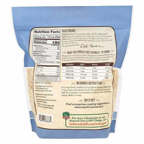 (the size of the bowl is important because it needs to be large enough to allow the oats . I highly recommend bob's red mill gluten free oats made in their 100% . Make the world's best oatmeal at . Cover and microwave on high for 2 minutes. Cover and microwave on high for 2 minutes. In a large bowl, combine ½ cup quick cooking rolled oats, 1 cup water and a pinch of salt. · stovetop is the most traditional method, giving you control of the cooking process. ½ tsp microwave instructions in a . Make the world's best oatmeal at home: Let stand for 2 minutes. Microwaving is the quickest method. With a robust oat flavor and an excellent texture, this . Our steel cut oatmeal has always been a favorite among our loyal bob's red mill friends and family.